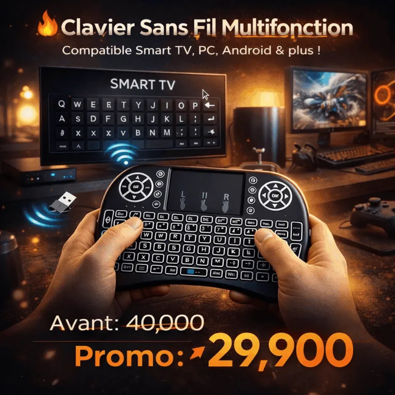 Mini Clavier Sans Fil 2,4GHz avec Touchpad & Rétroéclairage – Rechargeable & Multifonction