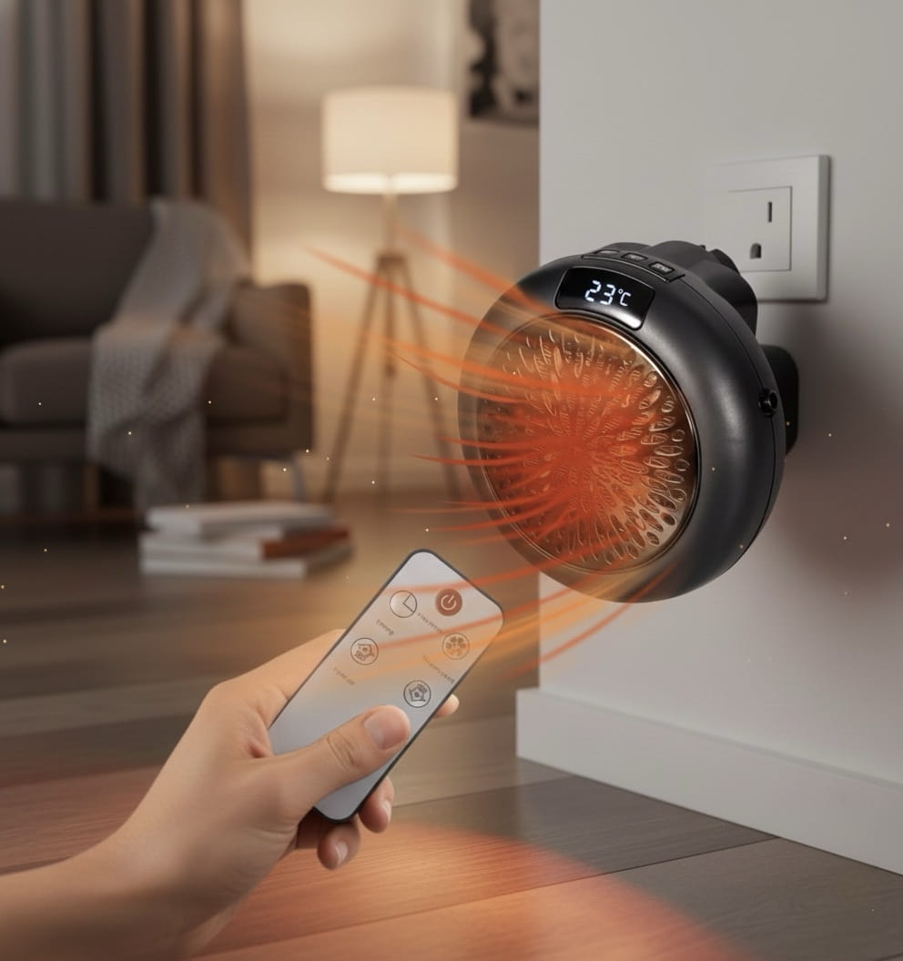 سخان جداري كهربائي 900W مع ريموت كنترول 🔥 حل عملي وسريع لتدفئة الحمام، الغرفة أو أي مساحة منزلية.