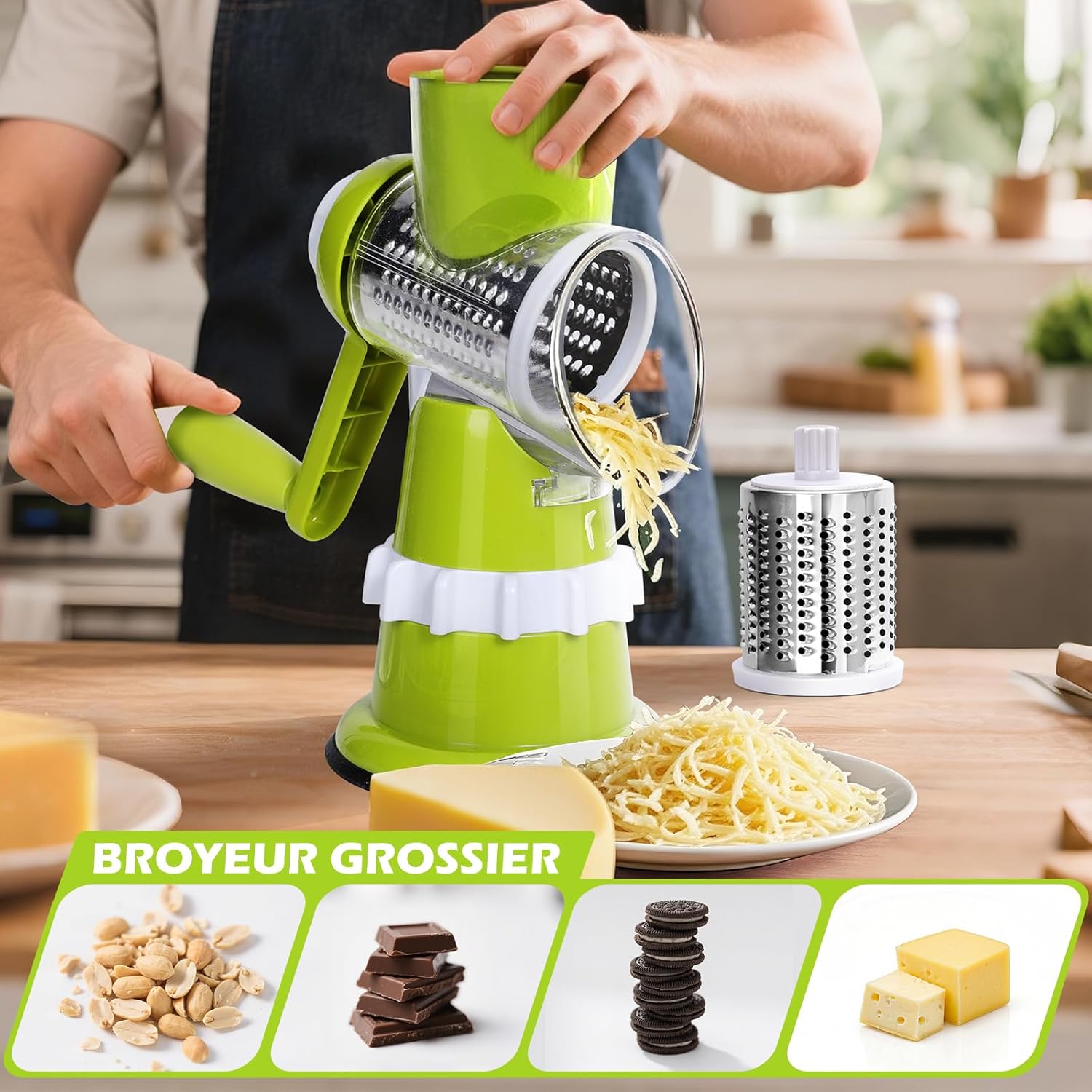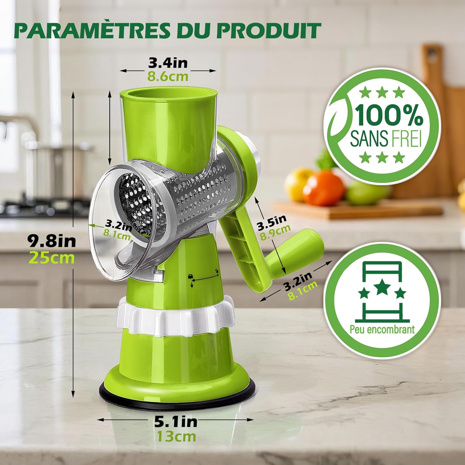 ✅ 3 tambours interchangeables pour râper fin, grossier ou trancher