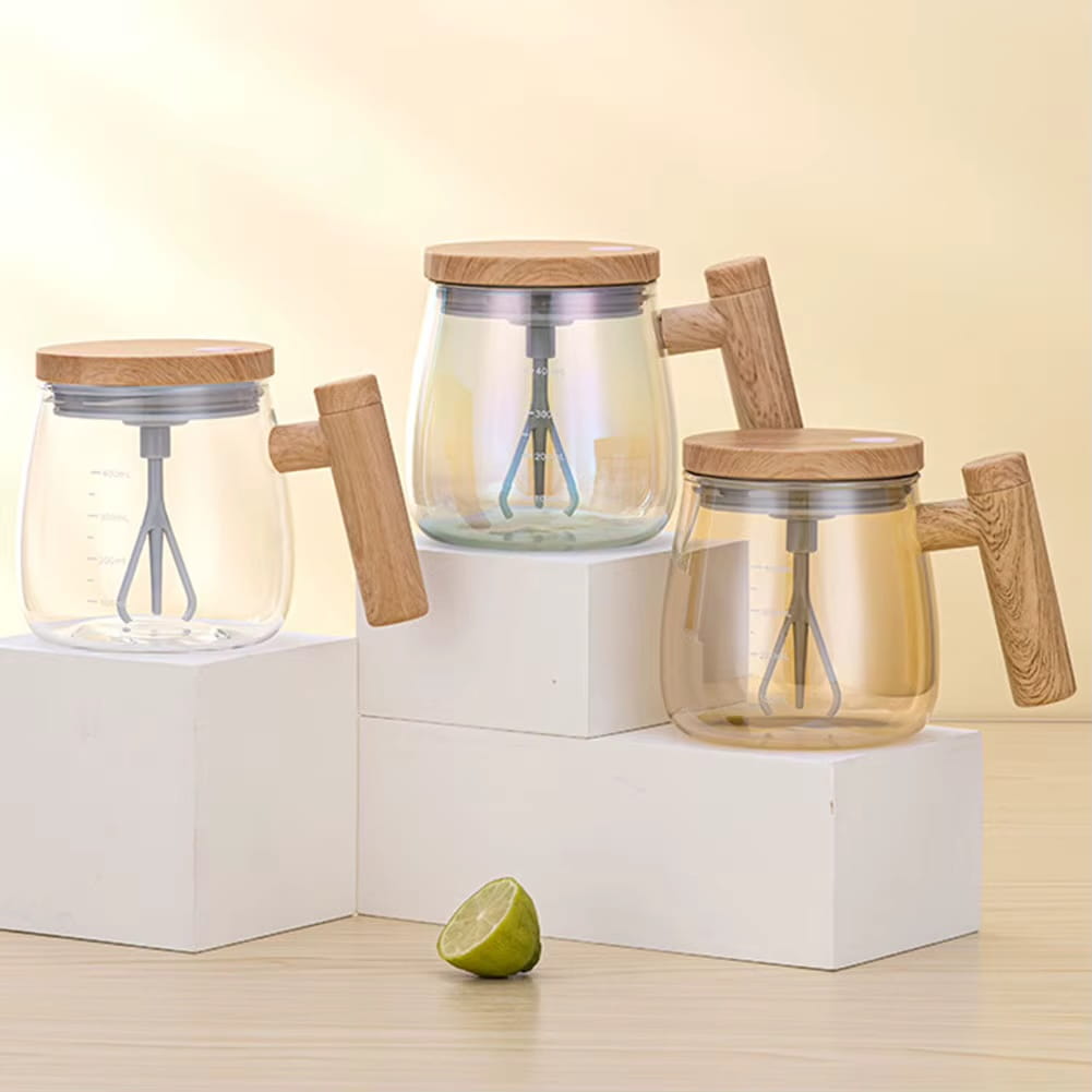 Tasse Auto-Remuante Élégante en Verre – 400 ml ☕ parfaite pour mélanger vos boissons chaudes ou froides sans effort.